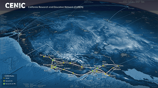 Meanwhile, on the IT end of the spectrum, R&E networks have been critical for enabling fast, cost-effective collaboration on shared network services amongst the University of California’s six health systems, said Michael Kilpatrick, UC Health technology program director. “We are currently working with CENIC to extend our capabilities up to Seattle on the 100G connection shared by CENIC, Internet2, and Pacific Northwest Gigapop between Sunnyvale and Seattle,” said Kilpatrick. “That is a major opportunity we’re looking at right now to extend our cloud networking capabilities to the Northern regions.”